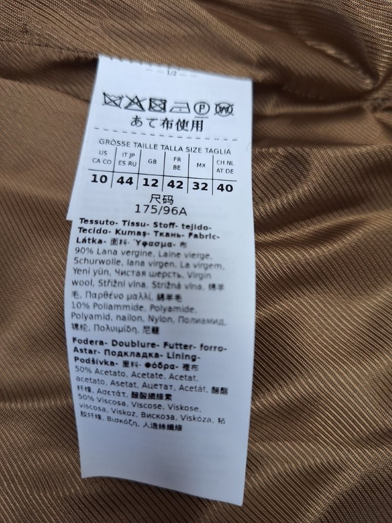 material: zunaj 90% volna, 10% poliamid, notranjost: 50% acetat, 50% viskoza,