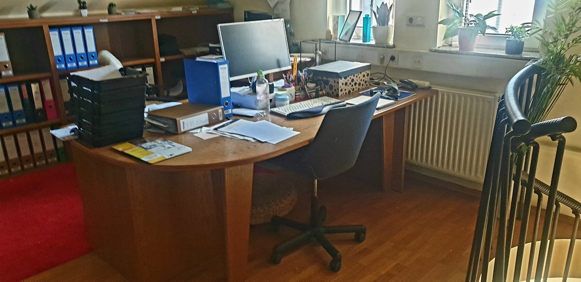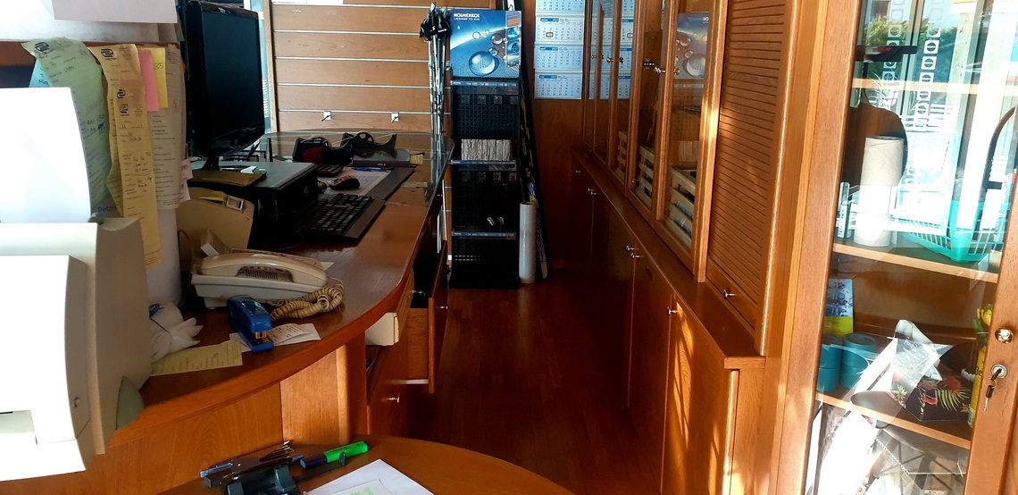 Prostori obsegajo pritličje (sprejemnica - prodajalna z wcjem, večji prostor - mogočih več opcij - pisarne, mirna obrt, medicina,..., dve pisarni, shramba). Pred stavbo več parkirnih mest.