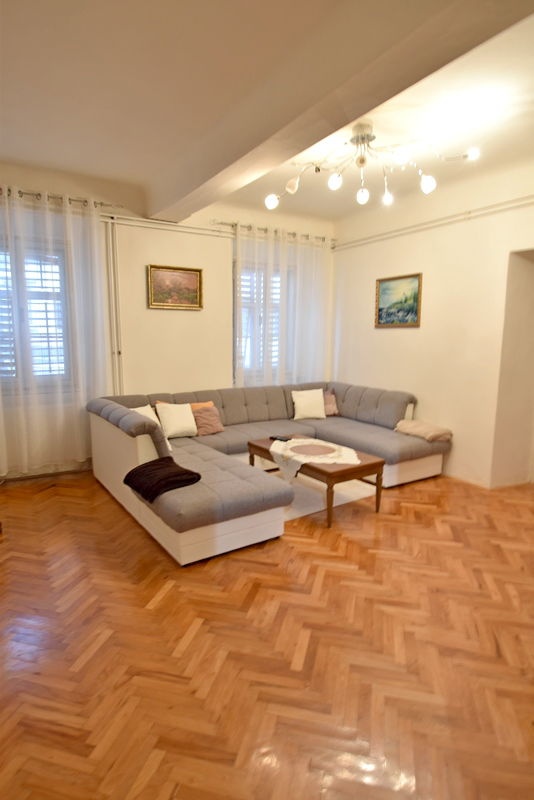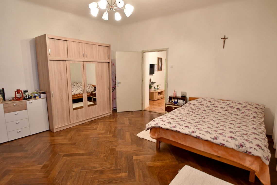 V centru Tržiča prodamo veliko 5 sobno meščansko stanovanje s 163 m2 stanovanjske površine, ki se nahaja v prvem nadstropju štiri stanovanjske stavbe. Vse sobe so prostorne z nekoliko višjimi in velbanimi stropi. Po tleh je položen klasičen masiven parket.